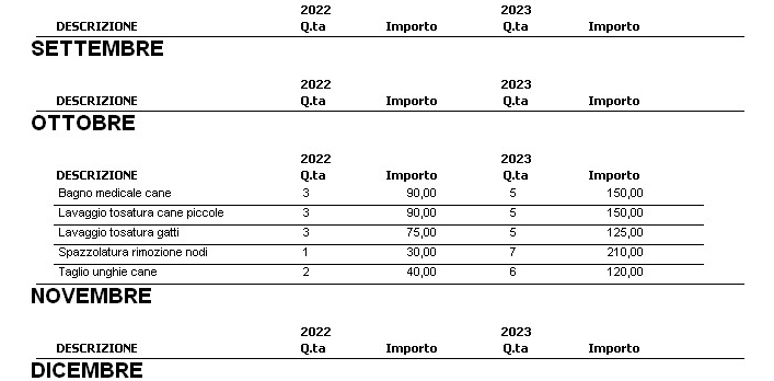 Statistiche per Categoria del servizio: elenco di tutte le vendite dei servizi appartenenti ad una certa categoria, esempio estetica, solarium, ect..